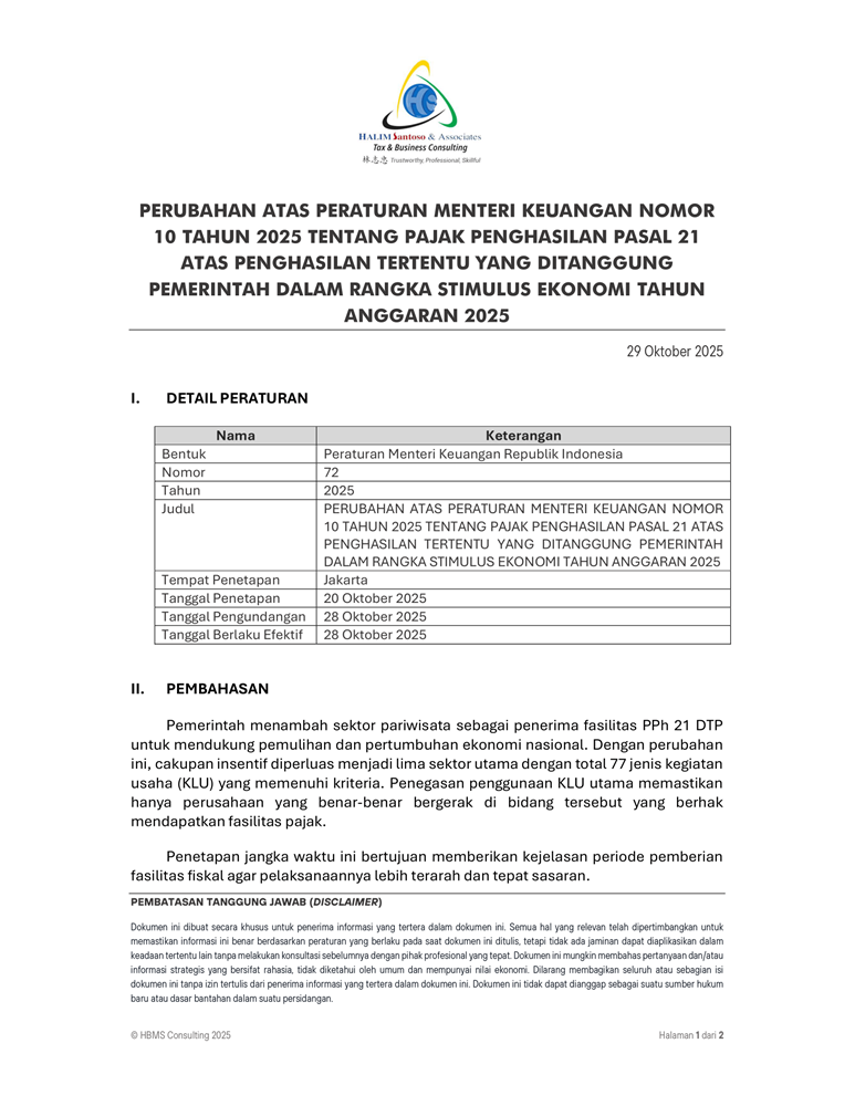 Summary – PMK No. 72 2025 Related Articles Summary – KMK 8 MK EF Tahun 2025Summary – PMK No. 72 2025Summary – KMK 7 MK EF Th 2025 – Tarif Bunga Sanksi Administratif dan Imbalan BungaSummary – PERDJP18_PJ_2025Summary PER DJP 16 PJ 2025Summary - KMK 4 MK EF Tahun 2025Summary PER 13 PJ 2025Summary PMK 37 2025SUMMARY - PMK 36 2025SUMMARY - PMK 34 2025Summary - KMK 2 MK EF Tahun 2025Summary - PER DJP 06 PJ 2025Summary - Keputusan Menteri Keuangan 1 MK EF Tahun 2025Summary - KMK/6/MK/KF/2025 tentang TARIF BUNGA SEBAGAI DASAR PENGHITUNGAN SANKSI ADMINISTRATIF BERUPA BUNGA DAN PEMBERIAN IMBALAN BUNGA PERIODE 1 MEI 2025 SAMPAI DENGAN 31 MEI 2025Summary KMK 5 Tahun 2025 tentang Tarif Bunga Sebagai Dasar Penghitungan Sanksi Administratif Berupa Bunga dan Pemberian Imbalan Bunga Periode 1 April 2025 sampai dengan 30 April 2025Summary PMK 15 Tahun 2025 Pemeriksaan PajakSummary KEP 67 PJ 2025Summary PMK 119 Tahun 2024Summary - PENG 13 2025Summary PMK 118 Tahun 2024Summary PMK 117 Tahun 2024Summary PER-1 PJ 2025Summary PMK 131 Tahun 2024Summary PMK 79 Tahun 2024Summary PMK 78 Tahun 2024