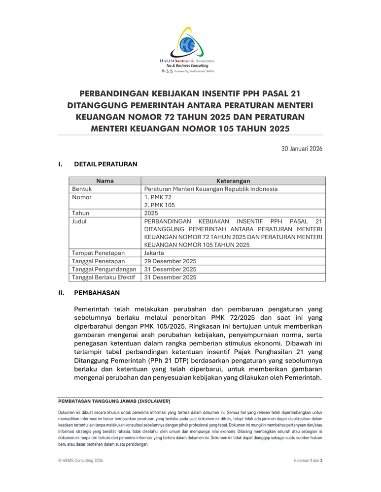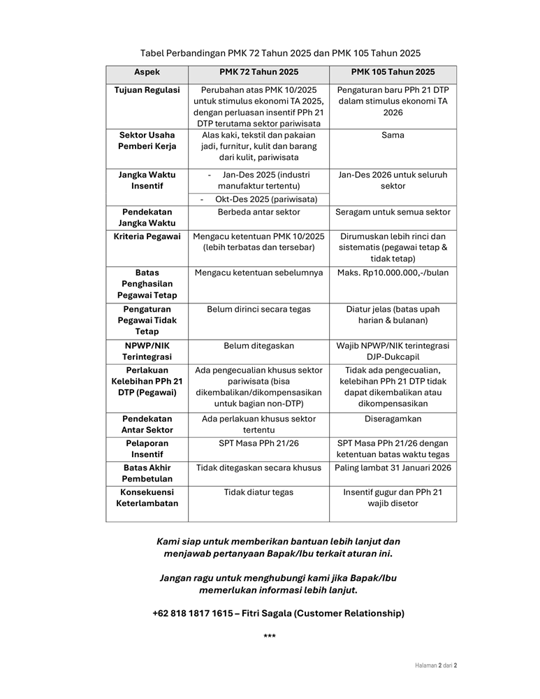 Summary Perbandingan Kebijakan Insentif PPh Pasal 21 Ditanggung Pemerintah Antara PMK Nomor 72 Tahun 2025 & PMK Nomor 105 Tahun 2025