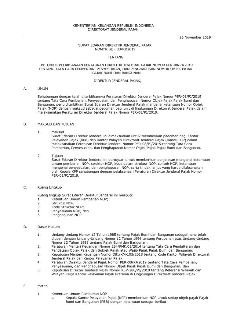 SURAT EDARAN NOMOR SE - 33/PJ/2019