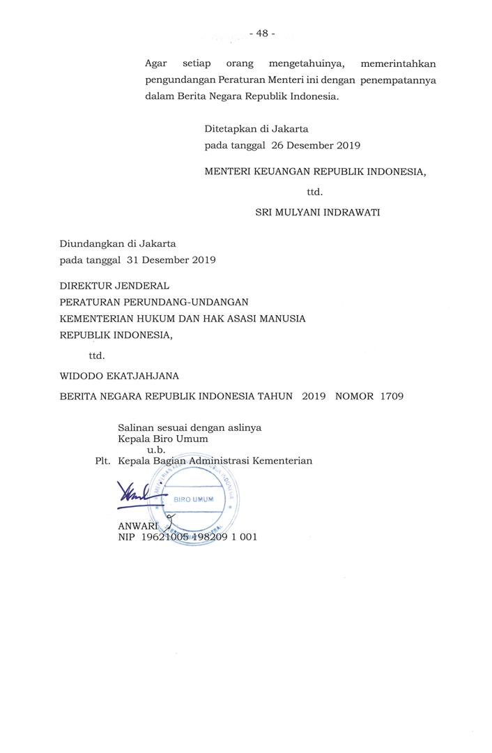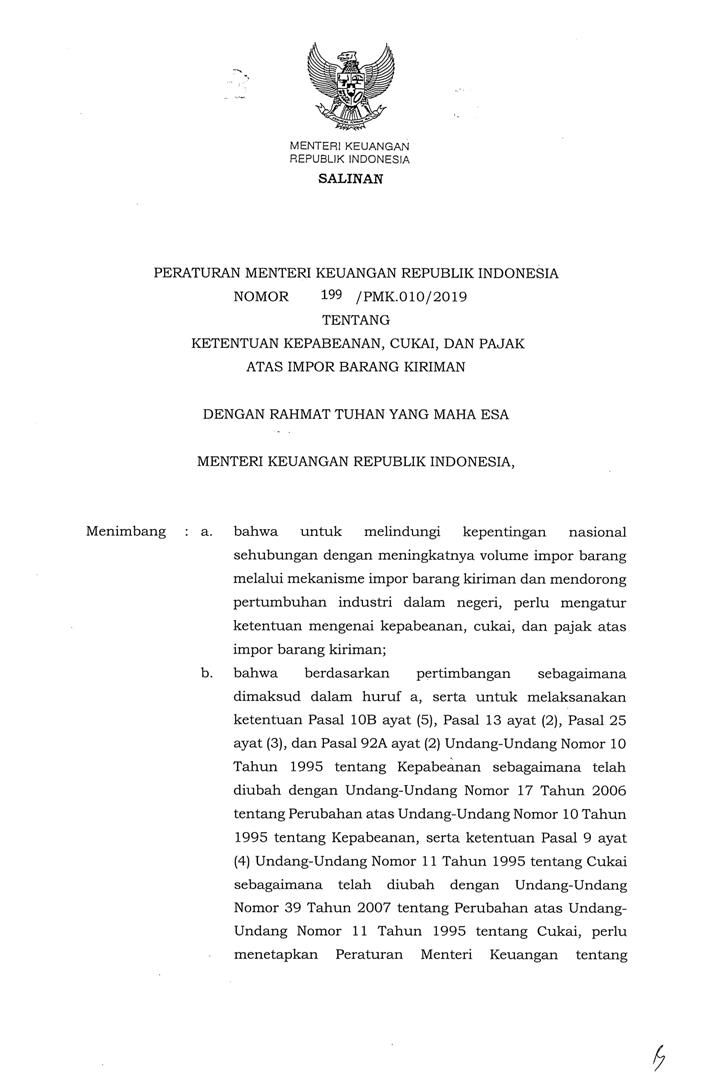 PERATURAN MENTERI KEUANGAN NOMOR 199/PMK.010/2019